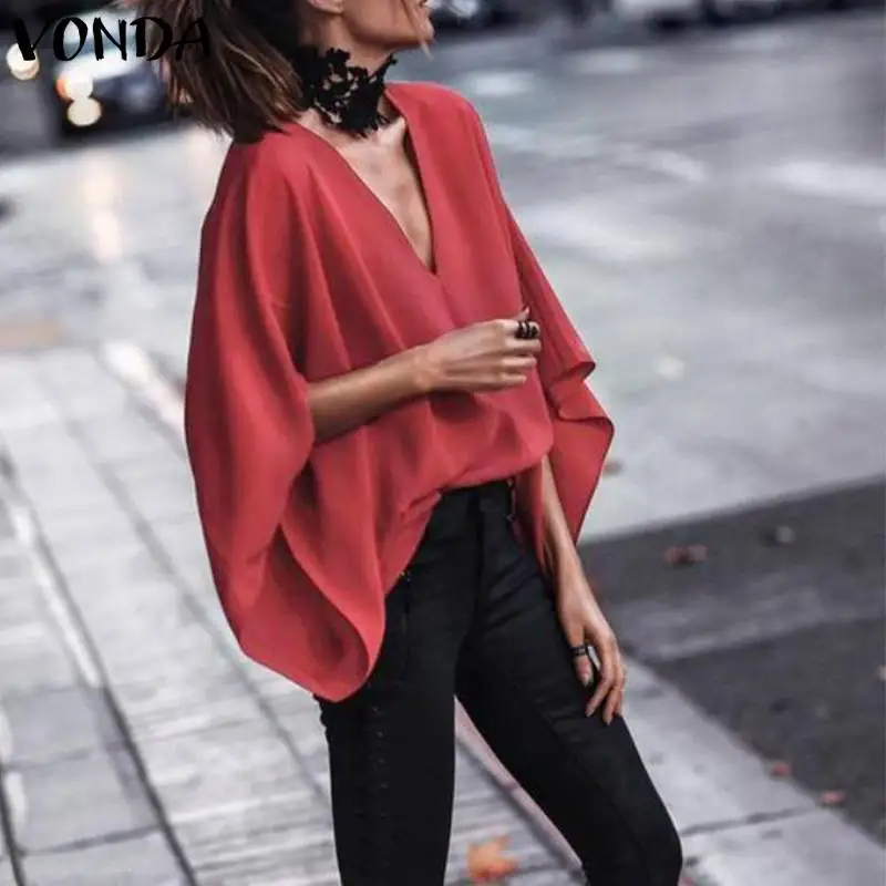 Best VONDA Fashion Blouse Shirts Women 2019 Spring Sexy V Neck Long Sleeve Tops Blouse Plus Size Casual
