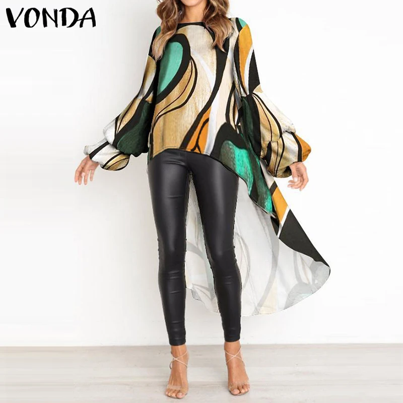 New 2019 VONDA Fashion Asymmetrical Tops Women's Lantern Sleeve Blouse O Neck Long Shirts Female Casual