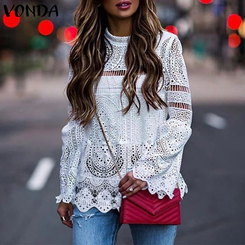 Buy VONDA 2019 Women Sexy Hollow Top Blouse Female Casual Long Sleeve Irregular Hem Patry Blusas Beach