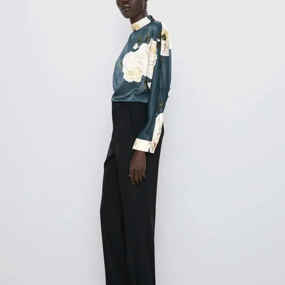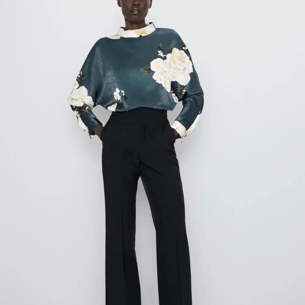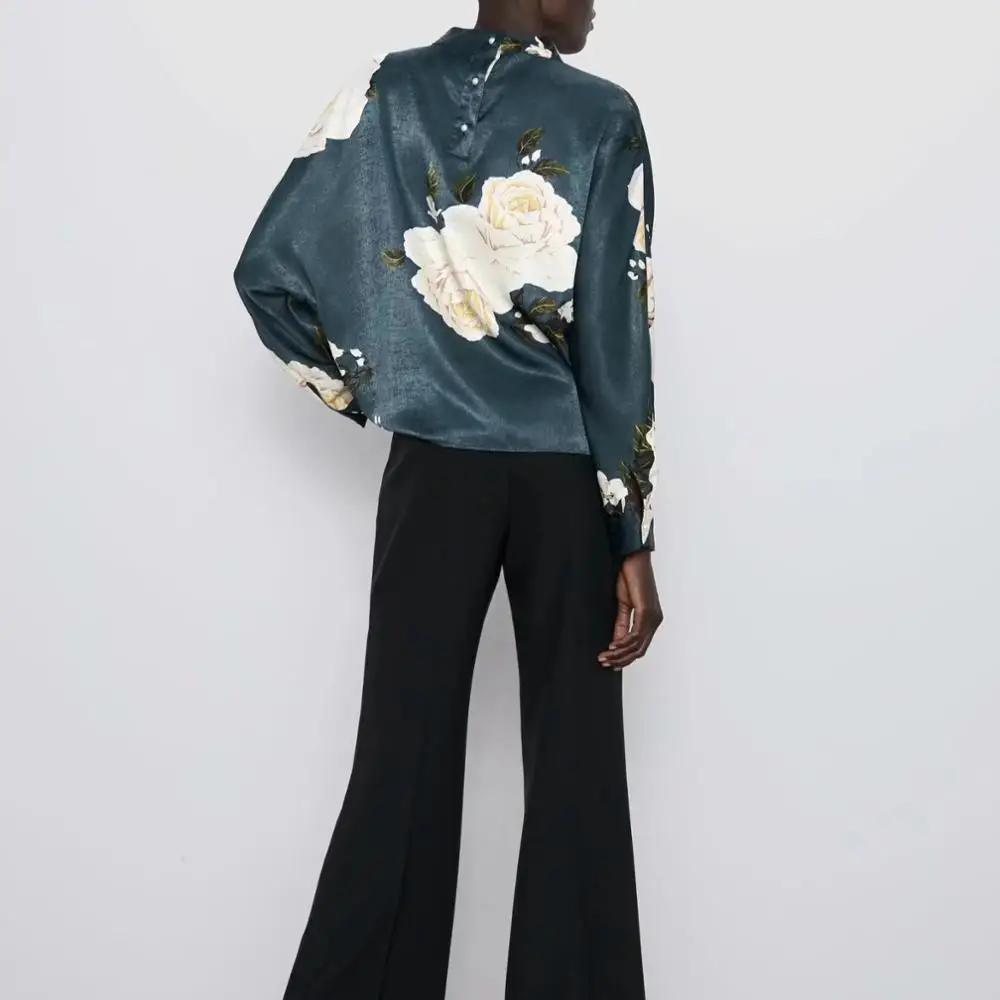 Buy ZA blouse shirt women floral pattern printed tops blue chiffon back buckle Casual ladies blouse fem