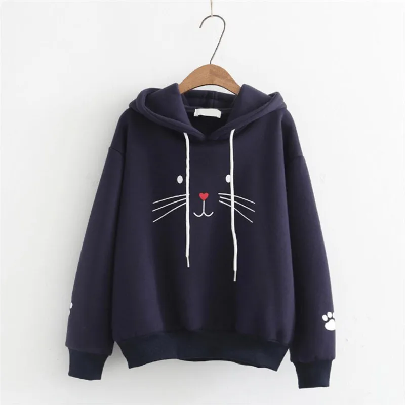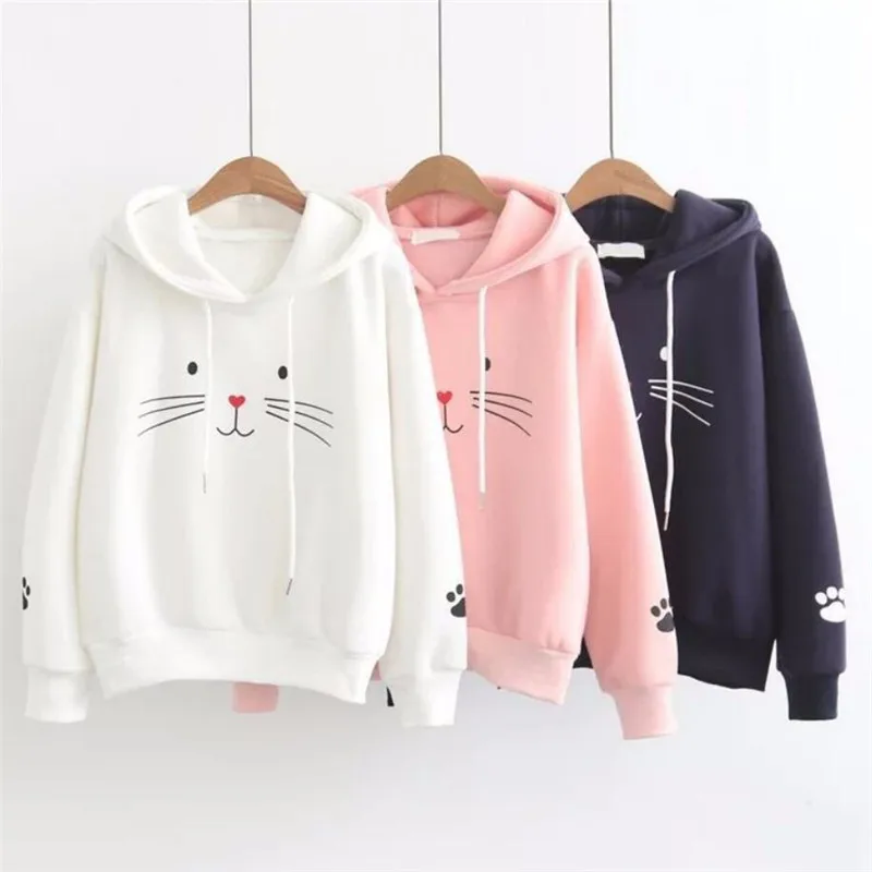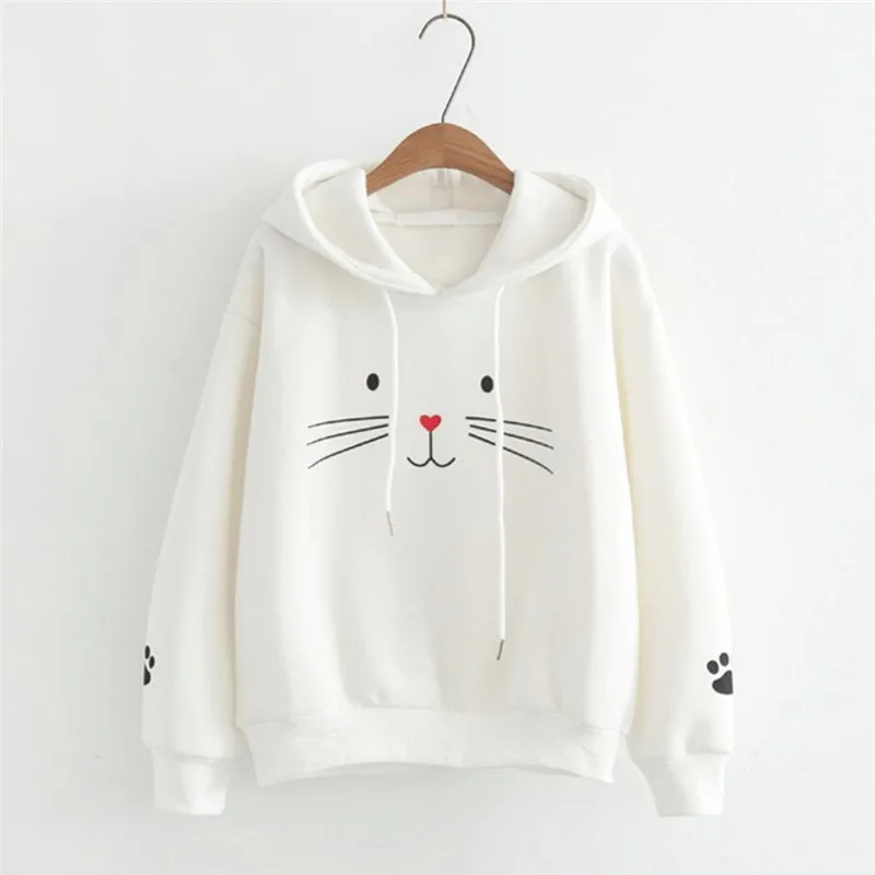 Promo 2019 Sweatshirt Hoodies Women Autumn Streetwear Cat Print Hoodie Clothes Korean Style Woman Stylish
