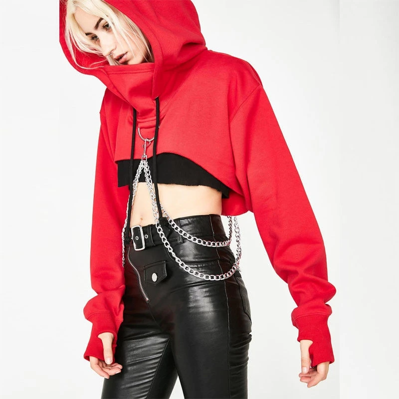 Promo Fashion Women Individual Hoodie Sweatshirts Crop Tops Hooded Spaghetti Strap Chain Cool Hoodies Pul