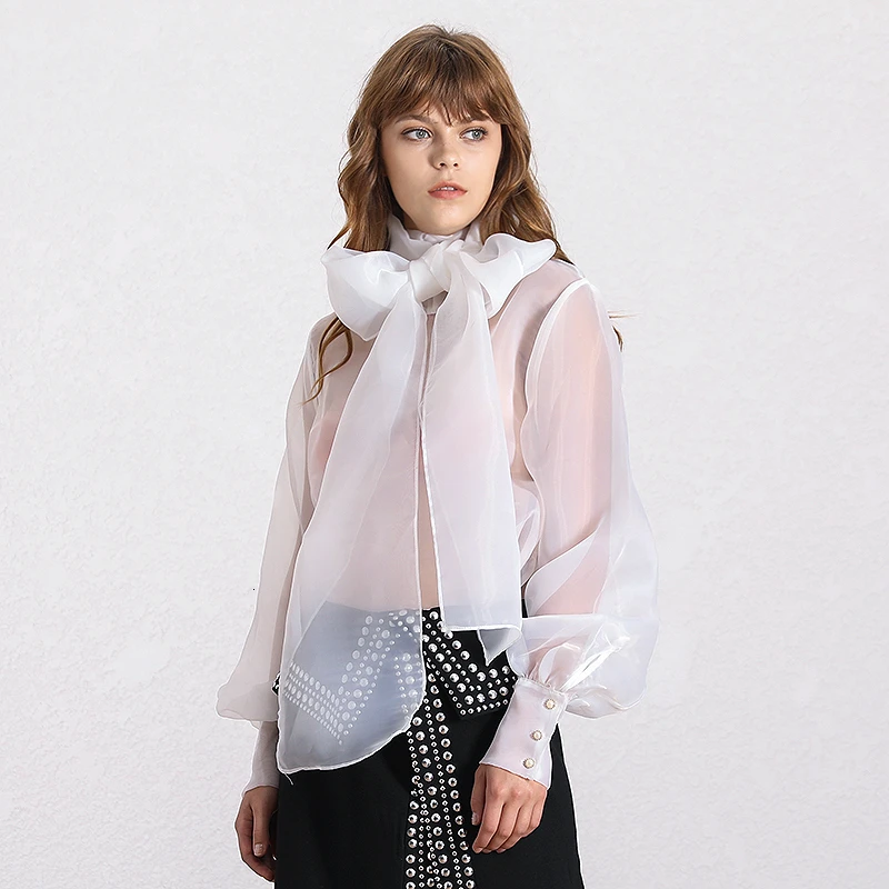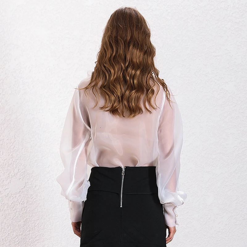 New TWOTWINSTYLE Elegant Perspective Womens Tops And Blouses Lantern Sleeve Lace Up Plus Size Shirts Fe