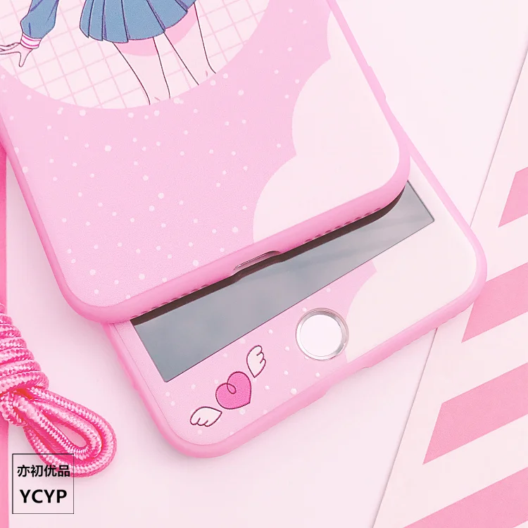 Best Angel wings cover For iPhone X 8 7 plus Sakura case & front tempered glass sticker For iPhone 8 7 6