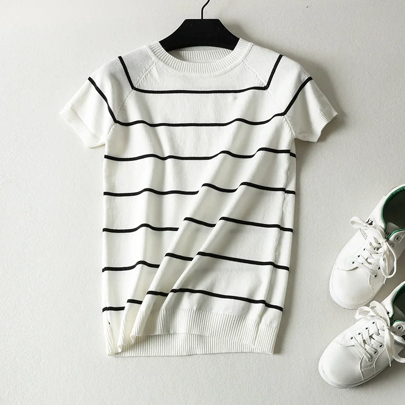 Today i want to review about Summer Short Sleeve Striped Pullover Women Sweater Knitted 2019 Sweaters O-Neck Tops Korean Pull Fe. I uncover this cool product from China Online Store, best manucafturer.