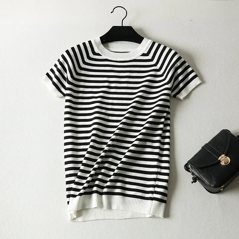 Best Summer Short Sleeve Striped Pullover Women Sweater Knitted 2019 Sweaters O-Neck Tops Korean Pull Fe