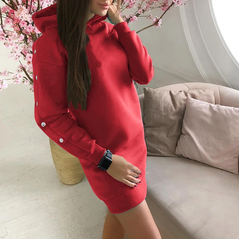 Best Hooded Women Hoodies Dress Casual New Autumn Winter Long Hoodie Sweatshirts Solid Pure Female Long