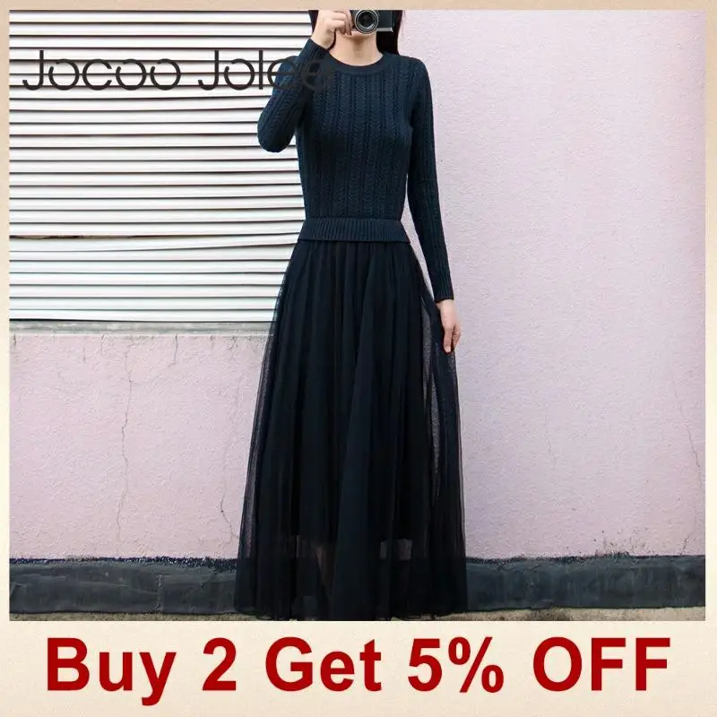 Buy Jocoo Jolee 2018 New Elegant Knitted Sweater Dress Women Casual Autumn Winter Sweater Mesh Patchwor