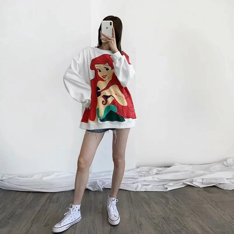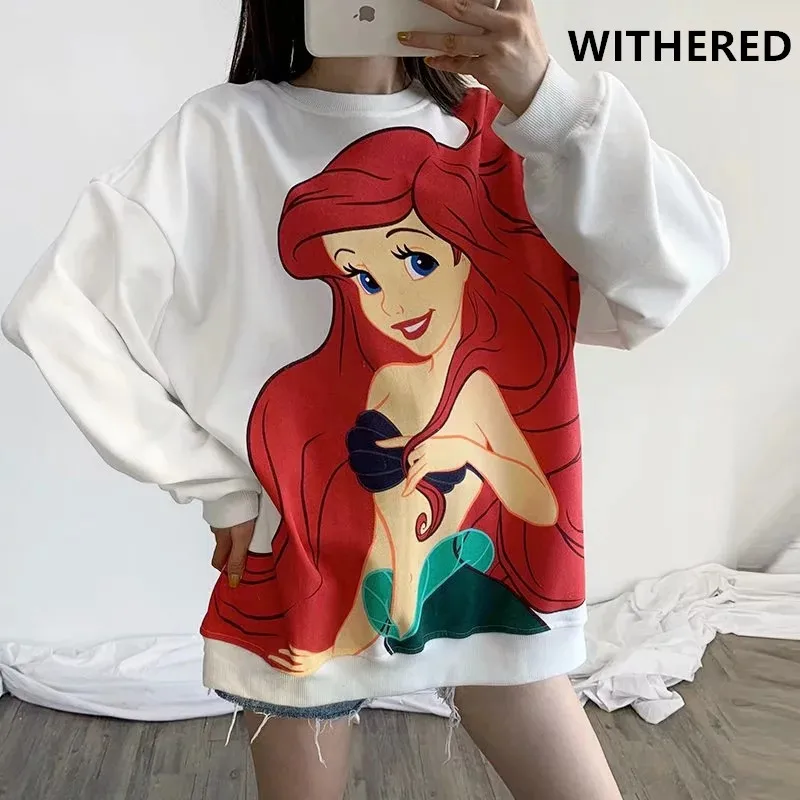 Promo Withered BTS sweatshirt women high street mermaid print cartoon cute oversize loose boyfriend o-nec