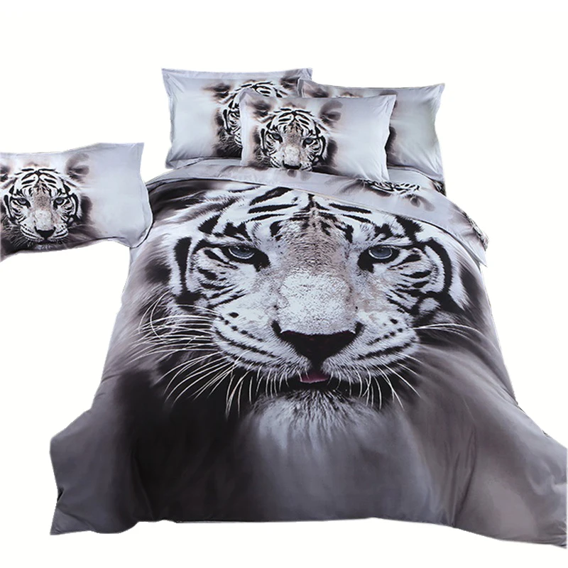 New Animal Bedding Sets Duvet Cover King/Queen Size Tiger White Cotton Blend Bed Cover Lion Bedclothes