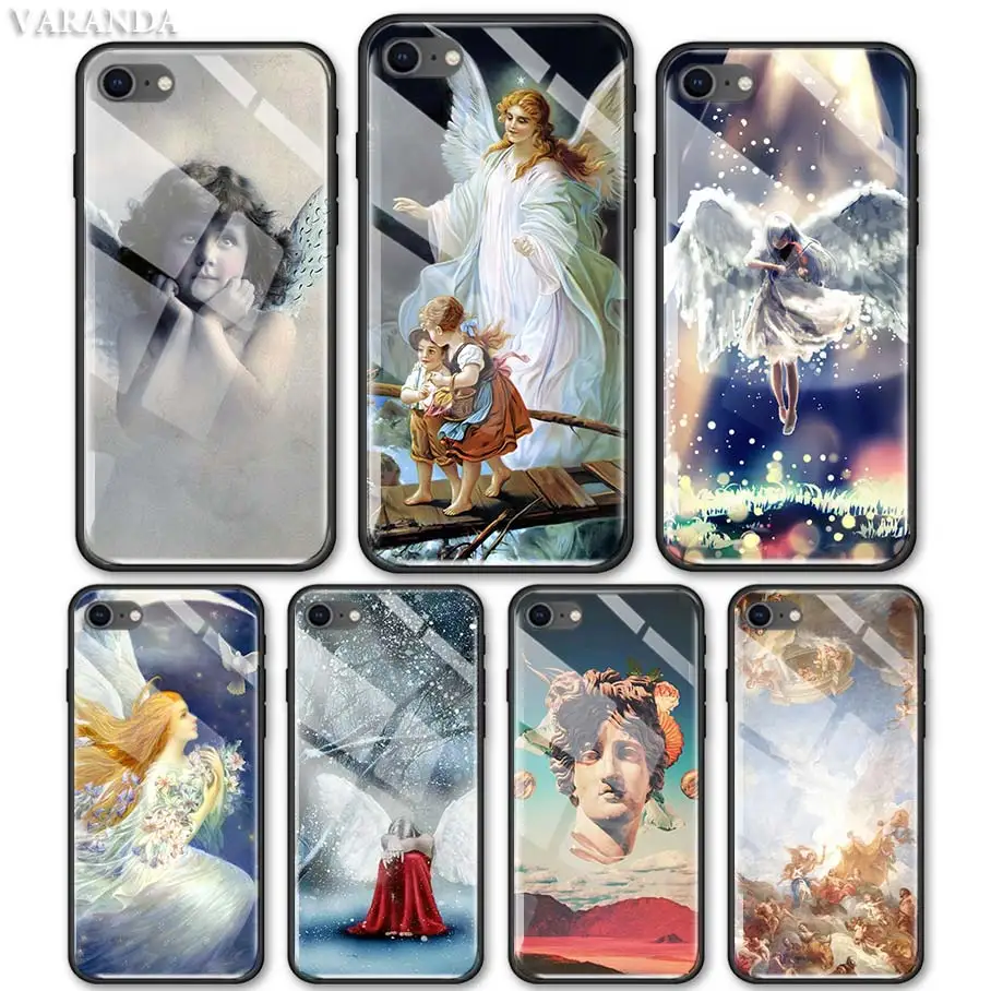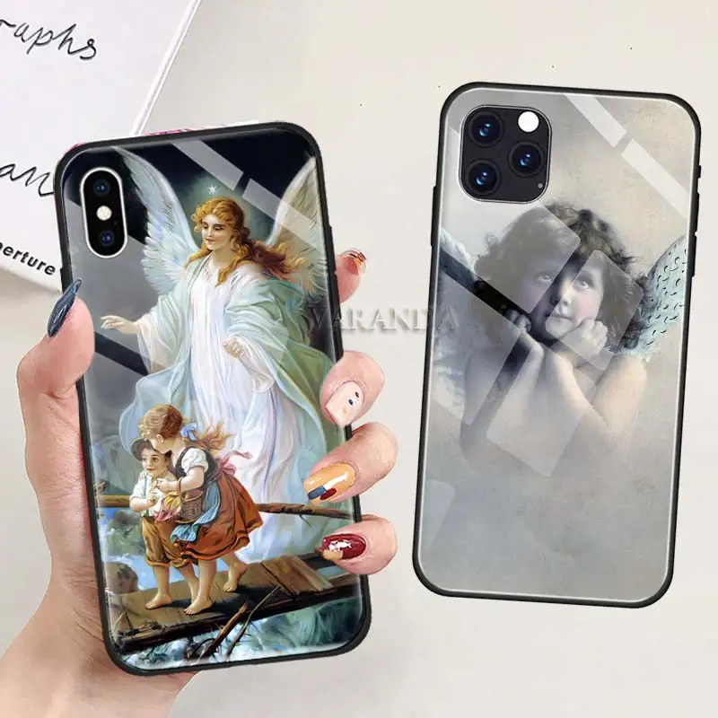 New Vintage cute Angels Case For iPhone 11 Pro Max X XS XR 7 8 6 6S Plus Tempered Glass Phone Black Sof