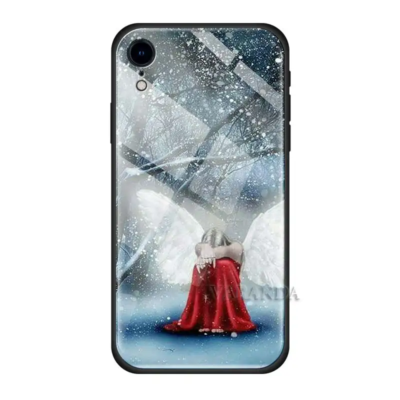Best Vintage cute Angels Case For iPhone 11 Pro Max X XS XR 7 8 6 6S Plus Tempered Glass Phone Black Sof