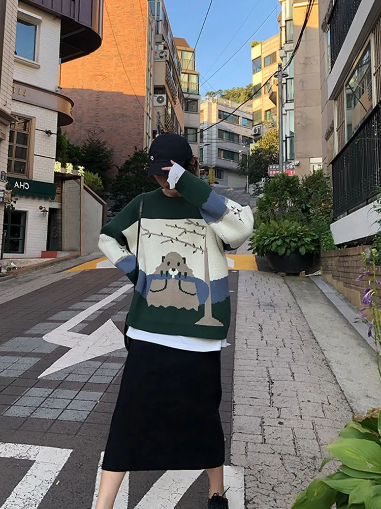 New 2019 Autumn Winter New Bear Women Sweater Loose Cartoon Thicken Pullovers Jumper Female Kawaii Cute