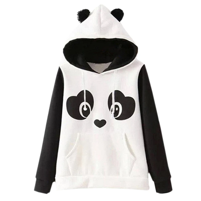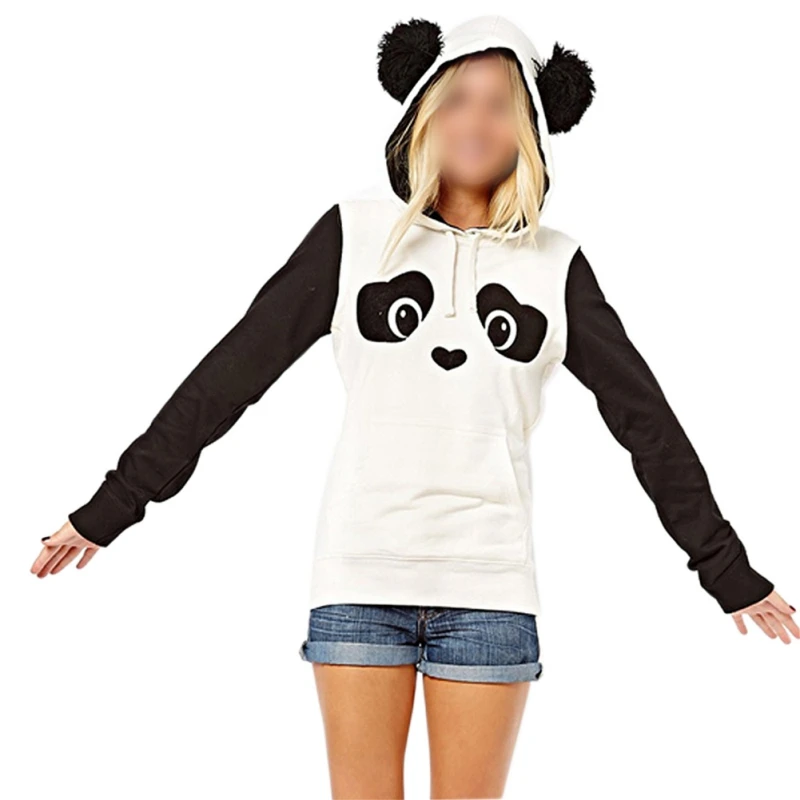 Promo Eu Hippie Style Kawai Hoodies Panda Cartoon Printed Sweatshirts For Women With Ears Hoody Casual Cu