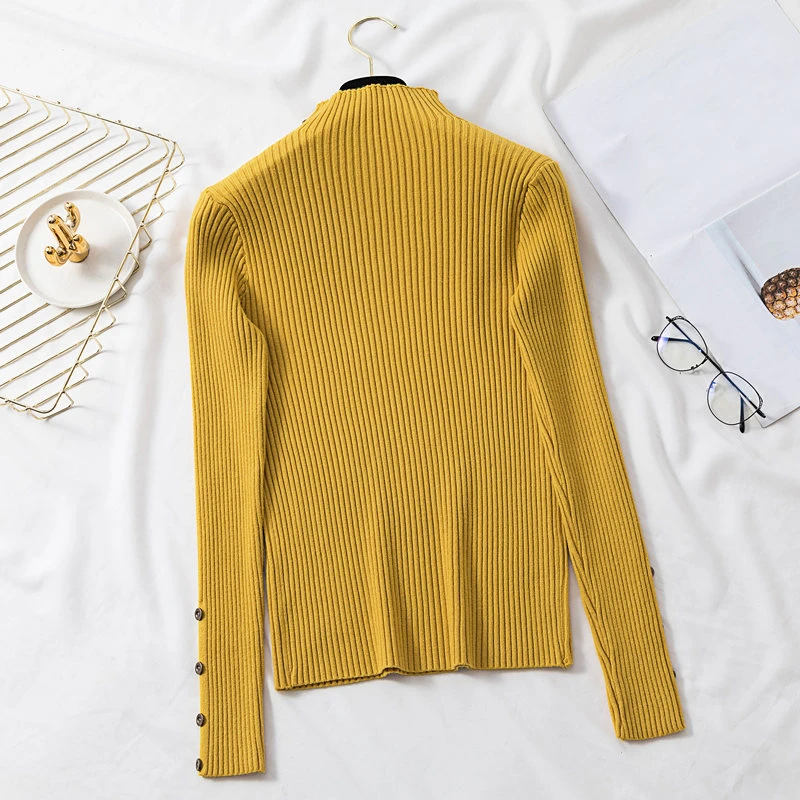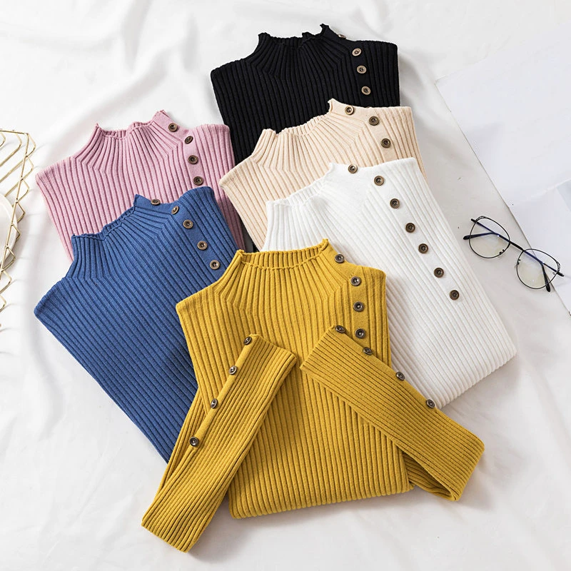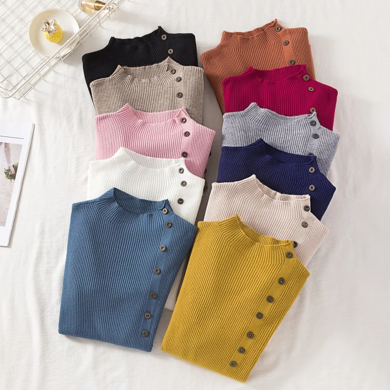Promo Winter Knitted Turtleneck Women Button Solid Sweaters And Pullovers Long Sleeve Korean Sueter Mujer