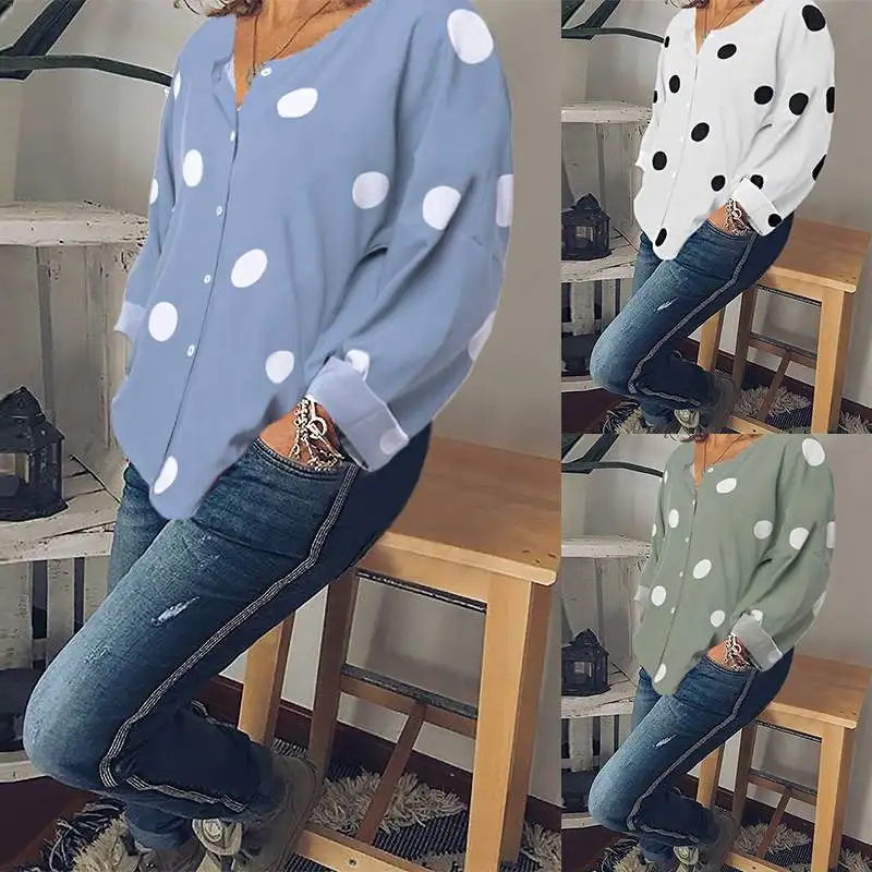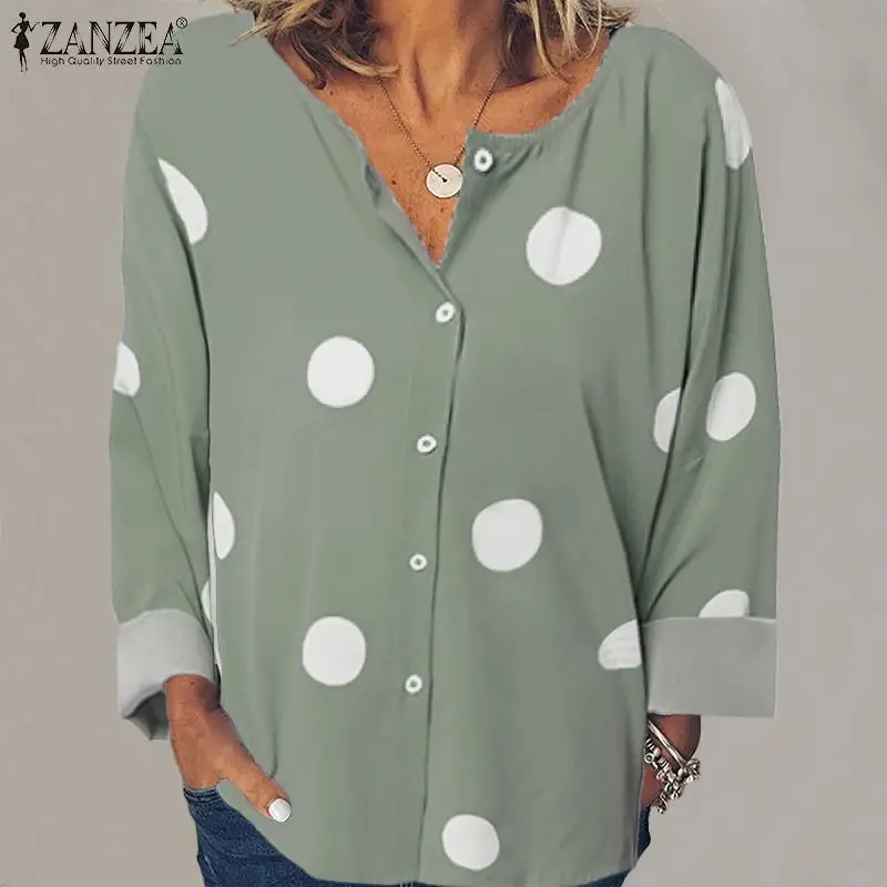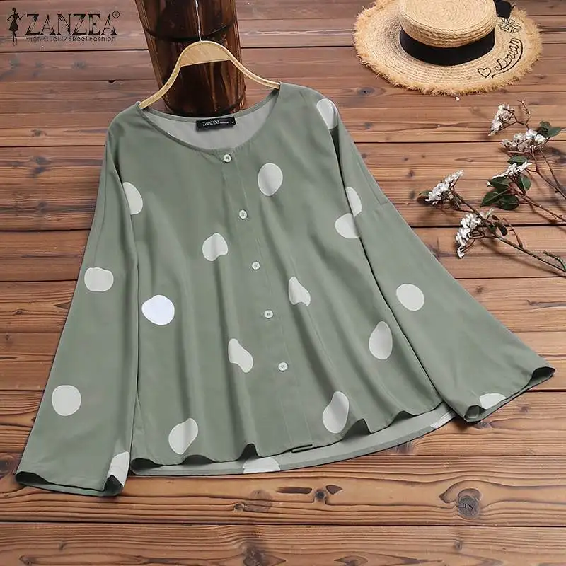 Promo ZANZEA 2019 Autumn Women Blouses Shirts Ladies Bohemian Tops Blusas Vintage Polka Dot Print Long Sl